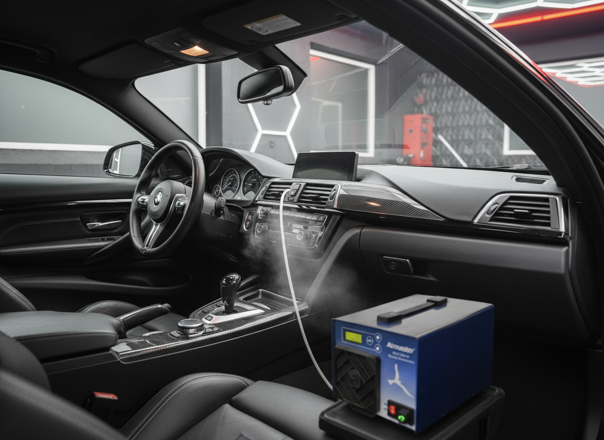 Trockendampfreinigung arbeitet mit heißem Dampf (über 150°C) und minimalem Wasserverbrauch. Sie ist schonender als Hochdruckreiniger, tötet Bakterien ab und reinigt selbst empfindliche Oberflächen wie Leder, Polster und Motorräume gründlich – ohne Chemie.